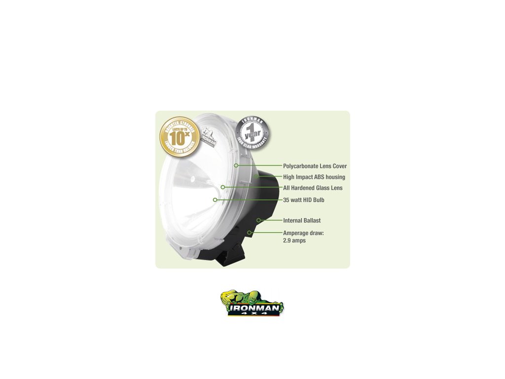 Round automotive halogen lights. Internal Ballast. 35 watt HID Bulb, 11H. High Impact ABS housing. Polycarbonate Lens Cover. Hardened Glass Lens. Amperage draw: 2.9 amps. Price for 1 pair.Additional parameters