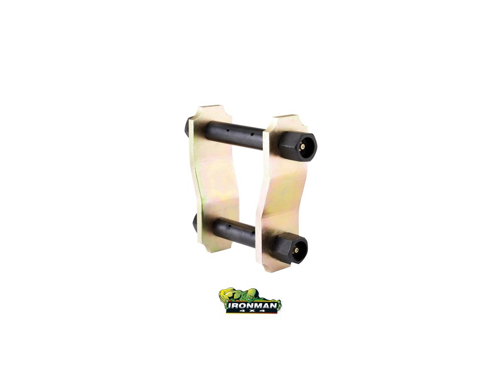 Unique encapsulated grease nipples for maximum reliability. Increased plate thickness for rigidity. Twin Grease outlet per pin. Allows easy lubriction of polyurethane bushes. Servicable design built from stronger and thicker steel. Lubrication outlets for improved grease coverage. Ironman 4x4 Suspension was the first company in the world to recognise the importance of greasable shackles and pin kits. The reason for the introduction of greasable kits was that polyurethane bushes will provide extra long life if they are greased. Ironman shackle and pin kits are perfectly matched to be fitted with Ironman polyurethane bushes and come complete with protected grease nipples, recessed nuts and washers. To enhance appearance and make them rust resistant, Ironman greasable shackle and pin kits have been zinc rich coated. Qty req: 2 pc, Price for: 1 pc,Additional parameters