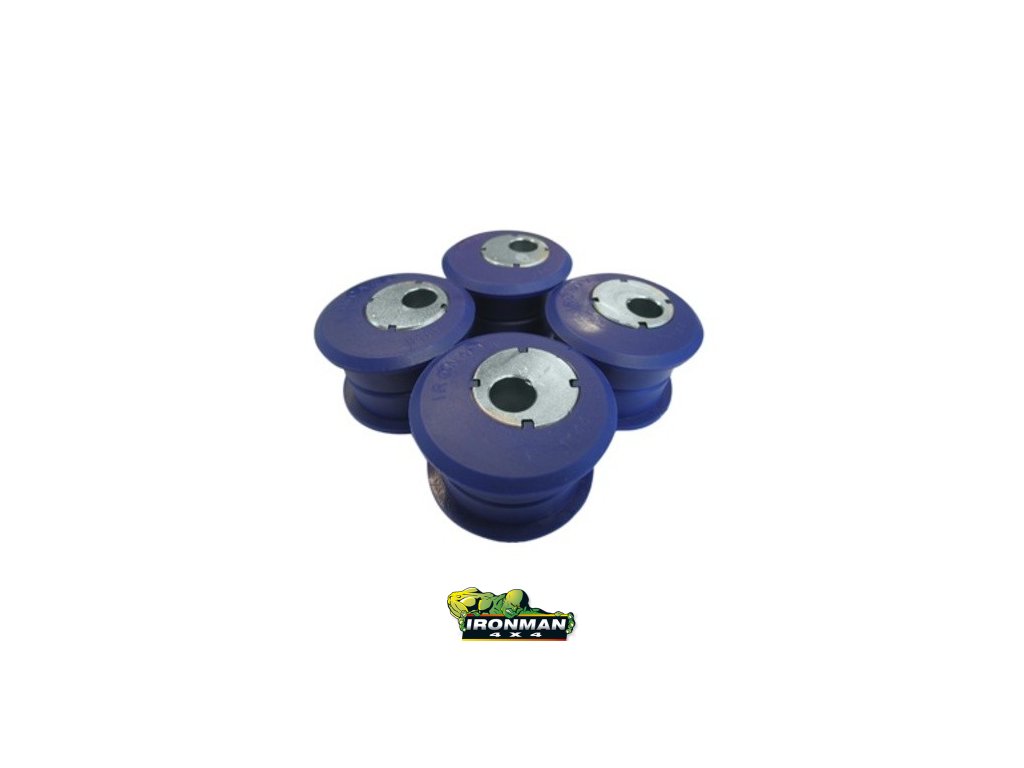 Ironman Adjustable Offset caster Bushes are made from a high density injection moulded Polyurethane and laser cut notched Steel Tube. Easy to fit and adjustable to 3 different settings, Standard, 2.5 Degree ﹠ 3.5 Degree. Adjustment is achieved by the rotation position of the inner steel tube. Caster angle is the backward or forward tilt of the differential steering axis. Positive caster is needed in most applications within front suspension in 4x4 vehicles. When a vehicle is lifted via raised springs, this positive angle is reduced. The reduced caster angle will detract feeling and response through the steering wheel. This will also cause reduced self-centring and possible wheel shimmy in extreme cases. The offset in the bushes will tilt the differential (positive) back toward manufacturers specification thus greatly improved handling and feel. Highly recommended for raised height 4x4`s up to 75mm lift to permanently cure vehicle wonder. Qty req: 1 set, Price for: 1 set,Additional parameters